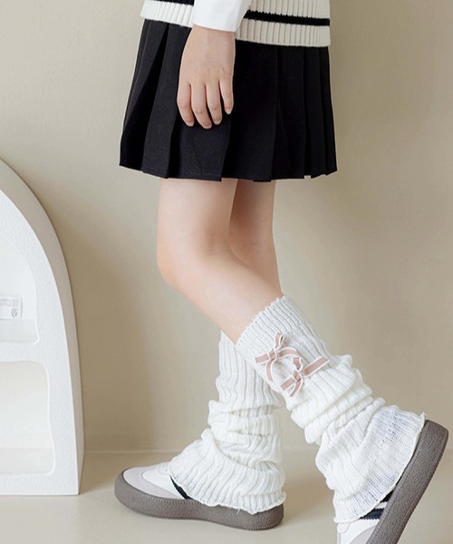 サイドの2つのリボンが可愛いレッグウォーマー。