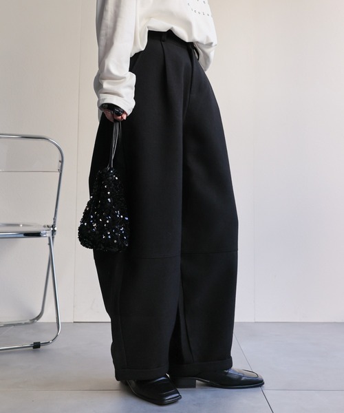 【メランジ微起毛 バレルレッグパンツ / スラックスパンツ】
