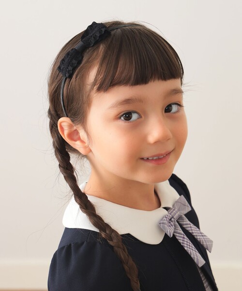 可憐なリボンカチューシャ程よいフリルを施したリボンが、顔周りを清楚に彩るカチューシャです。 細身のバンドなので、上品で華奢なシルエットが特徴です。 卒園式や入学式などのセレモニーシーンはもちろん、発表会やお出かけにも。 つけるだけでパッと明るい印象になり、ハレの日の特別な装いを完成させます。