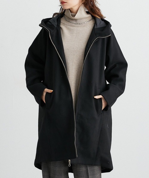 20代、30代、40代、50代、60代、70代、Soiunique、お洒落、かわいい、ぽっちゃり、ゆったりサイズ、ゆるっと、アウター、ウール、オーバーサイズ、オーバーシルエット、カジュアル、コート、シンプル、スワユニーク、デイリー、フェイクウール、フーデッド、フード、ベーシック、モード、ラフ、ロングコート、ロング丈、体型カバー、冬、定番、日常使い、日常着、普段着、楽ちん、華奢見せ