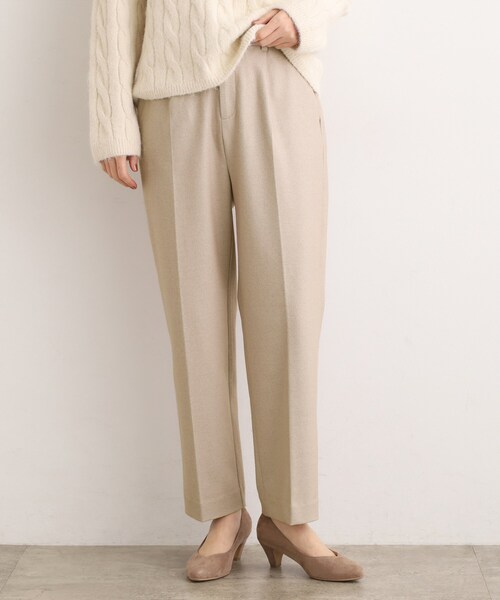 裾に向かって緩やかに細くなるテーパードシルエットで、脚のラインをすっきりと見せるパンツです。