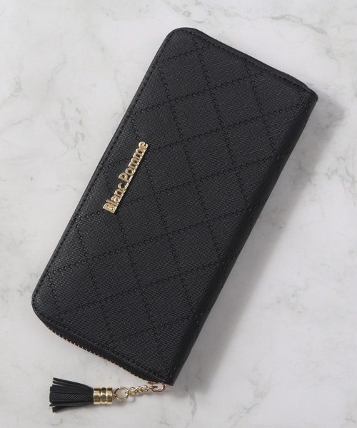 上質な型押しPUレザーのボディにBlanc Pommeのロゴマークを施したラウンドジップウォレットは、シンプルなデザインでありながら、光沢を抑えた上品なPUレザーの質感とチャームのようなタッセルが大人らしいエレガンスさを演出します。