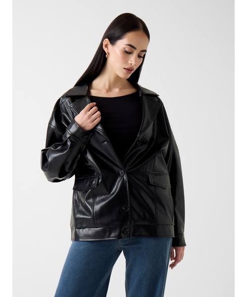 しなやかな質感が魅力のフェイクレザージャケット。