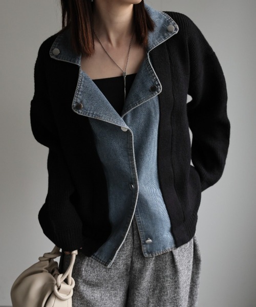デニム×ニットの異素材コンビが新鮮なカーディガン。