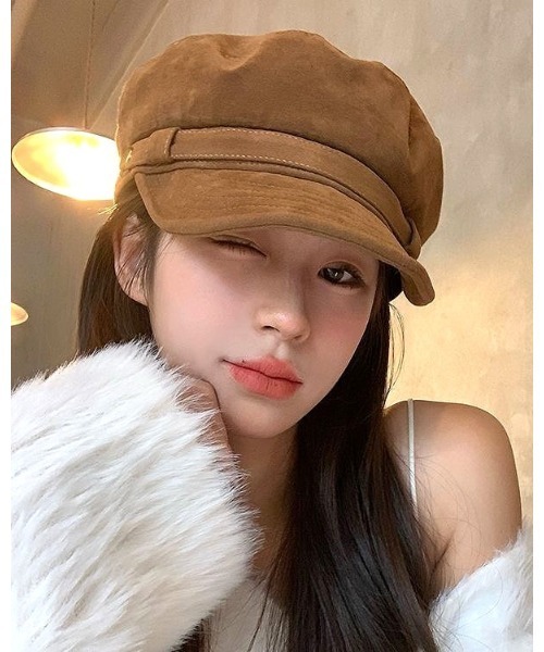 上品なフェイクスエード素材が魅力のキャスケット。