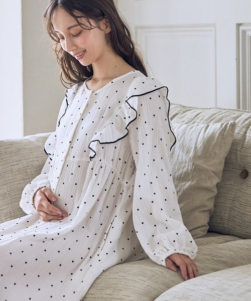やさしいWガーゼ×ハート柄でときめく韓国っぽなワンピースタイプのパジャマ。