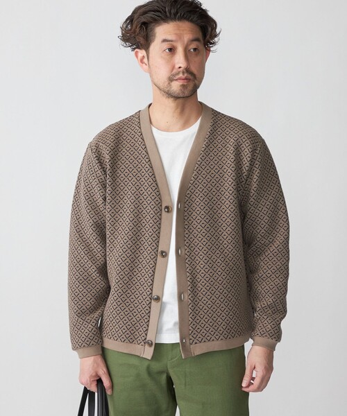 参考商品名:SHIPS: ジャカード 小紋柄 Vネック カーディガン