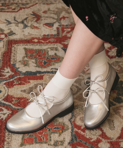 参考商品名:【BONLECILL noir】ダブルリボンストラップバレエシューズ/ギリーシューズ