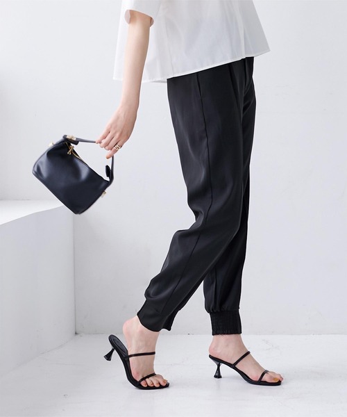 キーワード:パンツ レディース フルレングス リブ レギュラー 無地