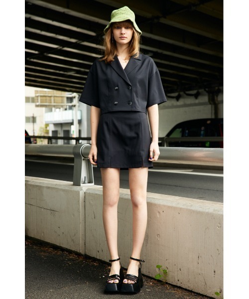 素材:【ジャケット】[本体]ポリエステル98ポリウレタン2[見返し部分]ポリエステル98ポリウレタン2、【スカート】[表地]ポリエステル98ポリウレタン2[裏地](本体)ポリエステル100(別布)ポリエステル78コットン22