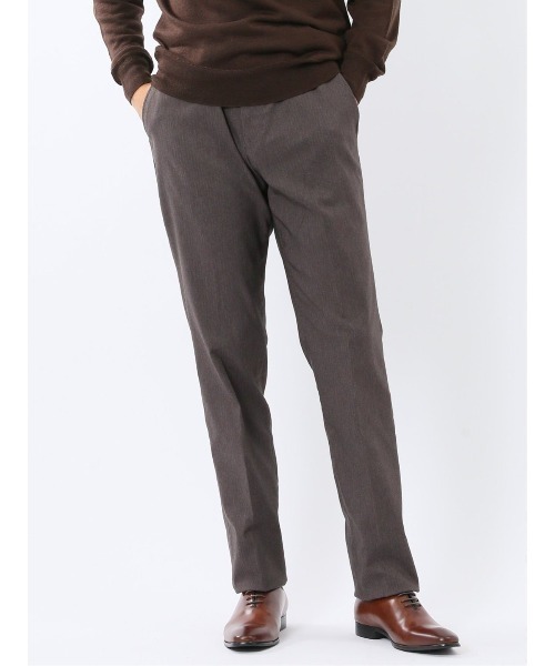 クロスストレッチ裏起毛 スリムフィット ノータックスラックス 茶(セットアップ可能)