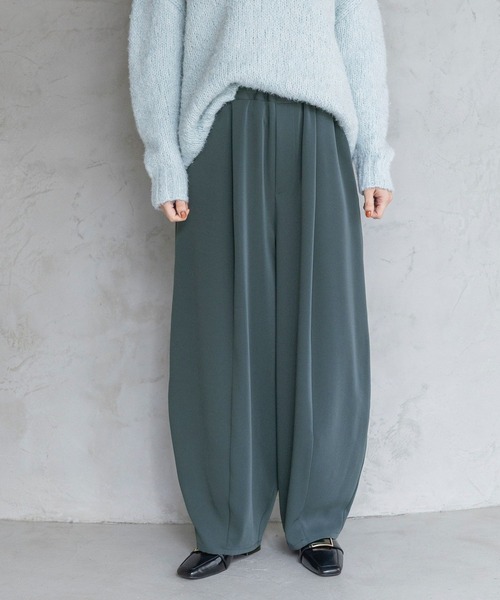 ツヤ素材×コクーンシルエットできれいめとカジュアルを両立させたイージーパンツ