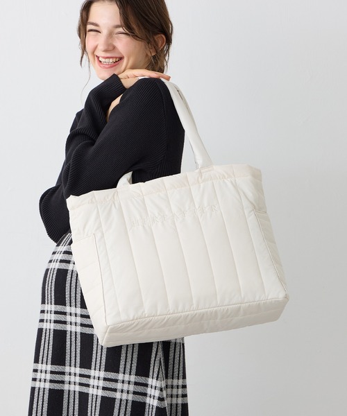 ふわっと軽いキルティング素材を使用した、大容量&軽量約280gのキルティングトート。