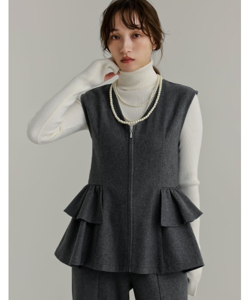 ウエストフリルとジップデザインがポイントのペプラムベスト。