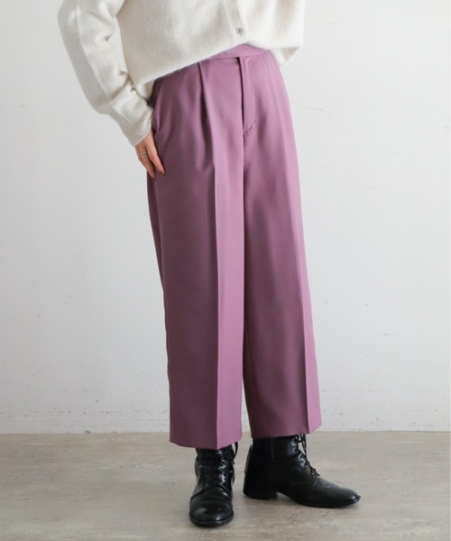 キーワード:パンツ レディース ウエストゴム クロップド ストレート ハイウエスト ワイドパンツ 無地