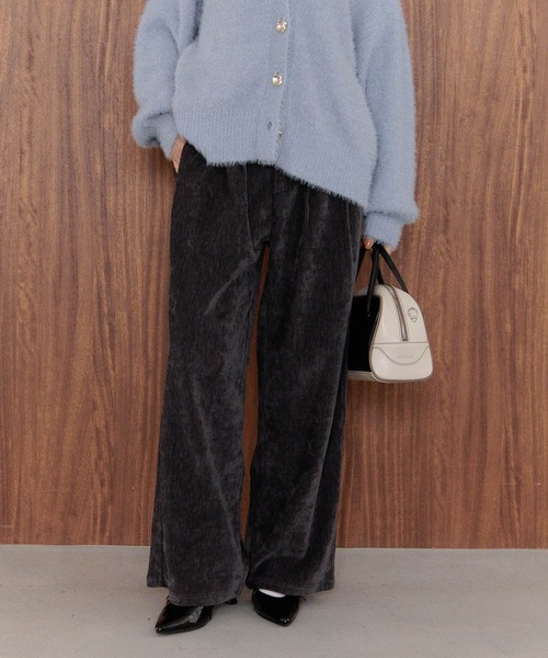 モール糸を使った暖かみのあるストレッチ素材を使用。