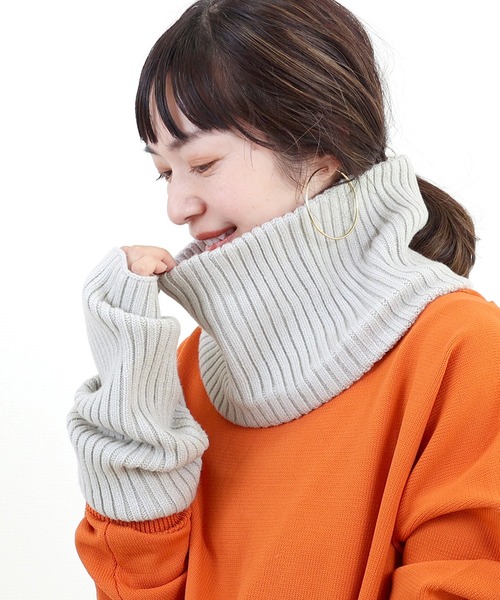 実用性とトレンドを両得できるアームウォーマーと同じニット素材のネックウォーマーがセットになった防寒性抜群の旬アクセサリー。