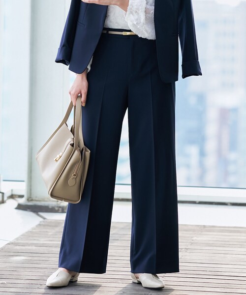 スーツとしてセットアップできちんと感のあるスタイルはもちろん、単品としてブラウスやニットと合わせてもキレイめでシャープな通勤用スタイルとして活躍します。