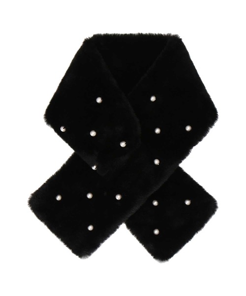 コットンパールが散りばめられた、フェイクファーマフラー。