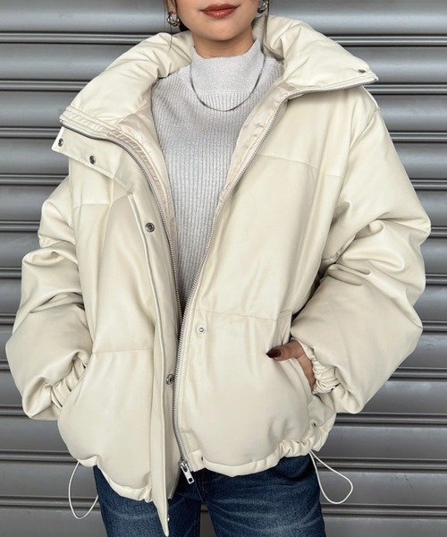 光沢感を抑えたフェイクレザーの中綿ジャケット。