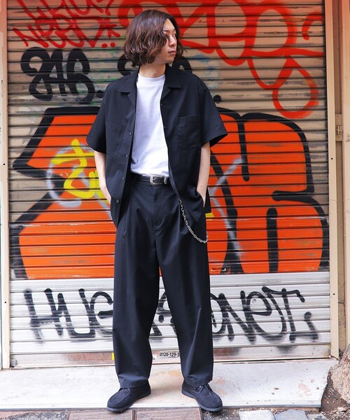 LARGE:身幅66 肩幅57 着丈73 そで丈24 ウエスト82 ヒップ110 股上38 股下65.5 もも周り75 すそ周り44