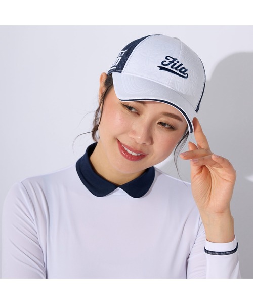 参考商品名:FILA GOLF/フィラゴルフ ゴルフウェア ブランド ロゴ UVカット 吸汗速乾 軽量 柔らかツバ 花柄 キャップ 帽子