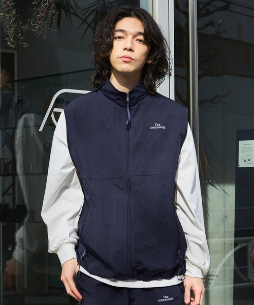 参考商品名:刺繍ロゴフルジップ裾ドローコードテックナイロンベスト