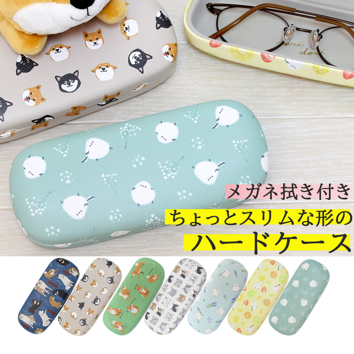 メガネケース ハード おしゃれ スリム 猫 柴犬 シマエナガ 薄め 犬 鳥 花柄 ギフト メガネ拭き付き フルーツ 薄型ハードケース メガネケース スリムタイプ