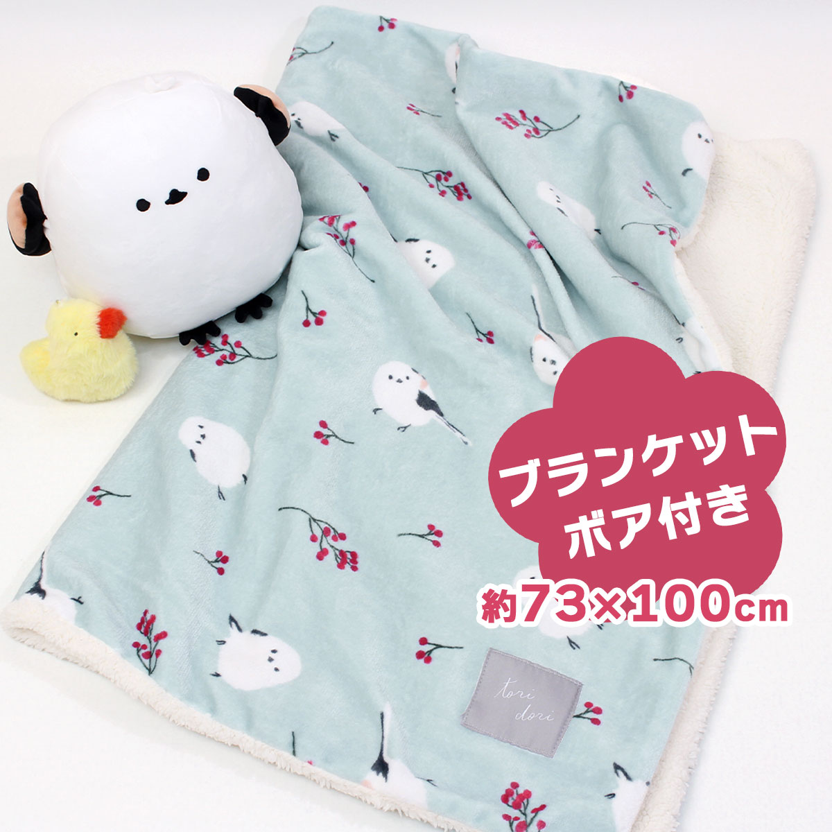 ブランケット ひざ掛け 厚手 シマエナガ ボア付き 暖かい 裏ボア 冬 縁起物 毛布 モコモコ デジタルプリントブランケット アカイミシマエナガ 897878