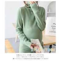 マタニティ 長袖tシャツ タートルネック 微起毛 ストレッチ 切りっぱなし カットソー トップス 産前産後