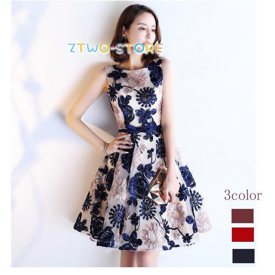 パーティードレス 10代 20代 30代40代 花柄ワンピースドレス カラードレス レディース 大人 着痩せ 上品 お呼ばれ 食事会 二次会 披露宴 卒業式 成人式