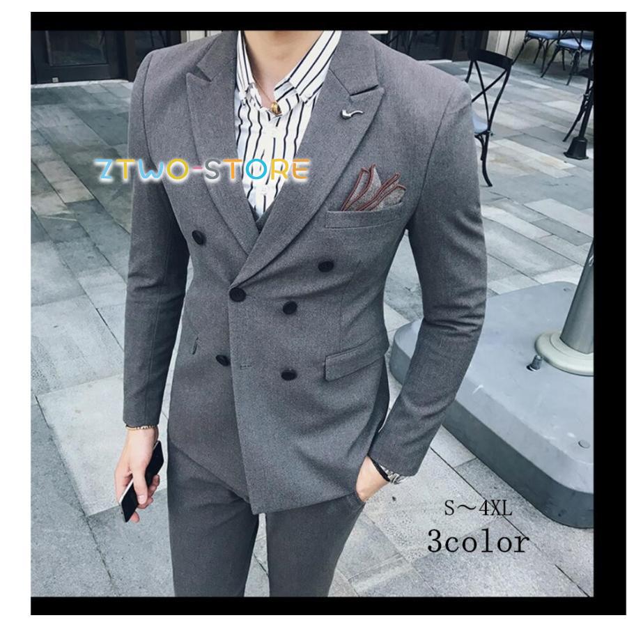 カッコイイ メンズスーツ タキシードスーツ 3点セットスーツ ダブルボタンスーツ フォーマルスーツ 結婚式 二次会 成人式 卒業式 就職活 ビジネススーツ 披露宴