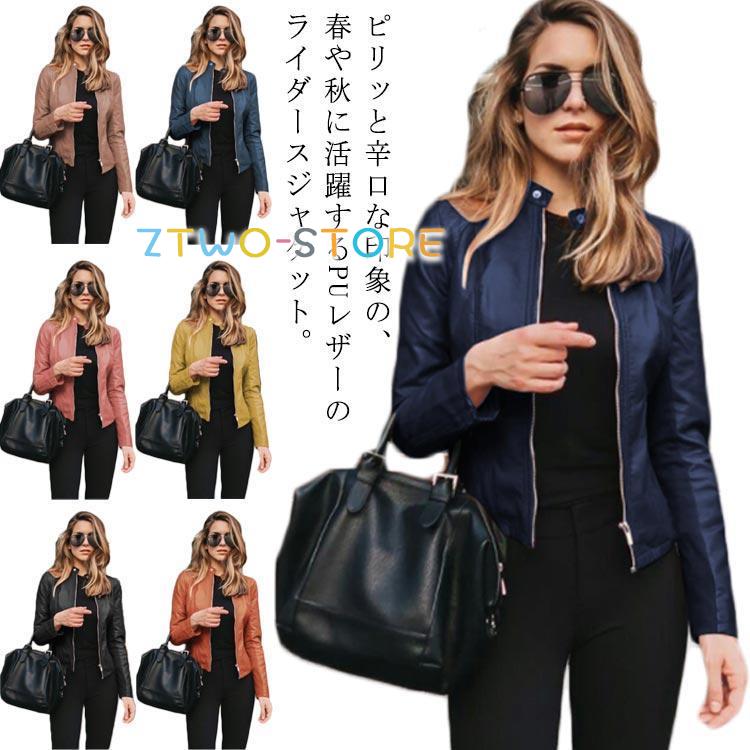PU レザー ジャケット レディース ライダースジャケット 春 秋 冬 長袖 大きいサイズ シングルライダース ブラック 革ジャン ライトアウター ジ