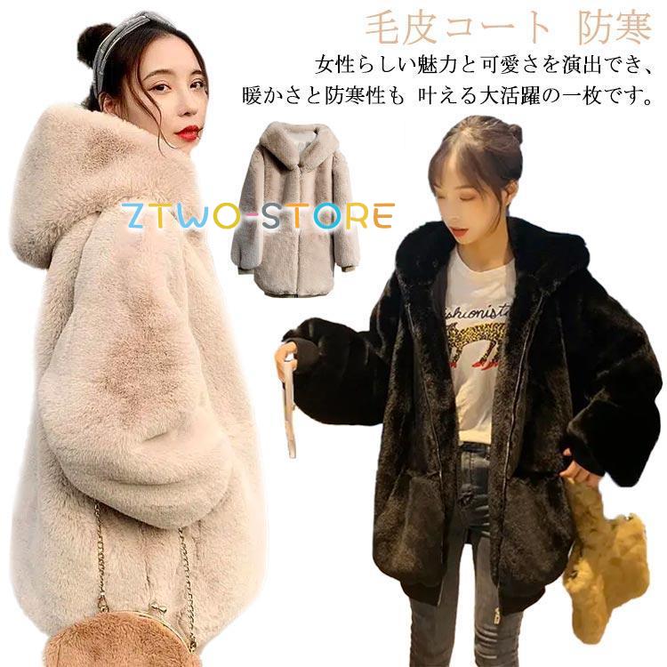 ファーコート レディース 冬 ジャケット フード付き フェイクファー アウター ふわふわ もこもこ エコファー ブルゾン きれいめ カジュアル 毛皮コ