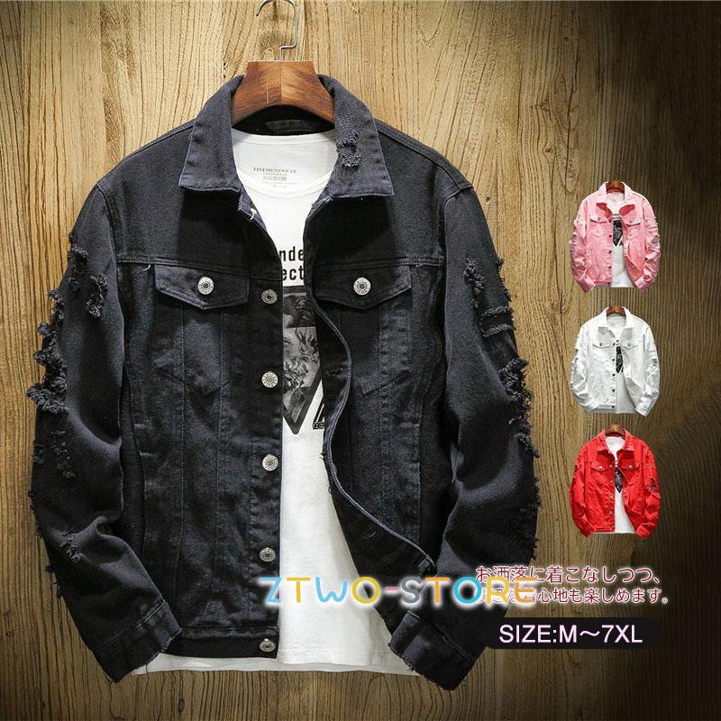 デニムジャケット Gジャン ジージャン メンズ アウター ブルゾン ジャケット 大きいサイズ ダメージ加工 秋 春 デニム ブラック ホワイト