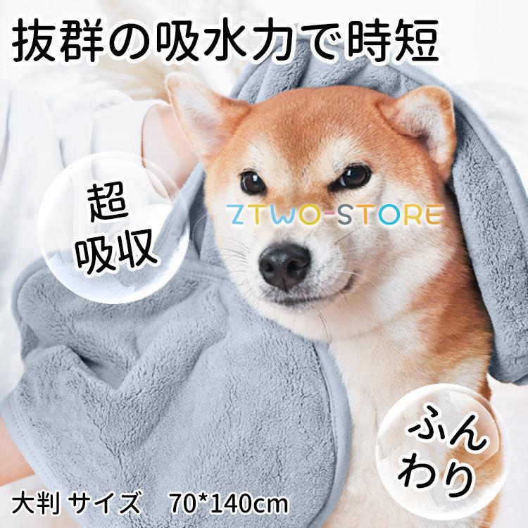 ペット用 タオル 大判 70*140cm バスグッズ 超吸水 厚手 マイクロファイバー 犬 猫 体拭き 速乾 ペットバスタオル ドライヤーの時間短縮 シャンプー