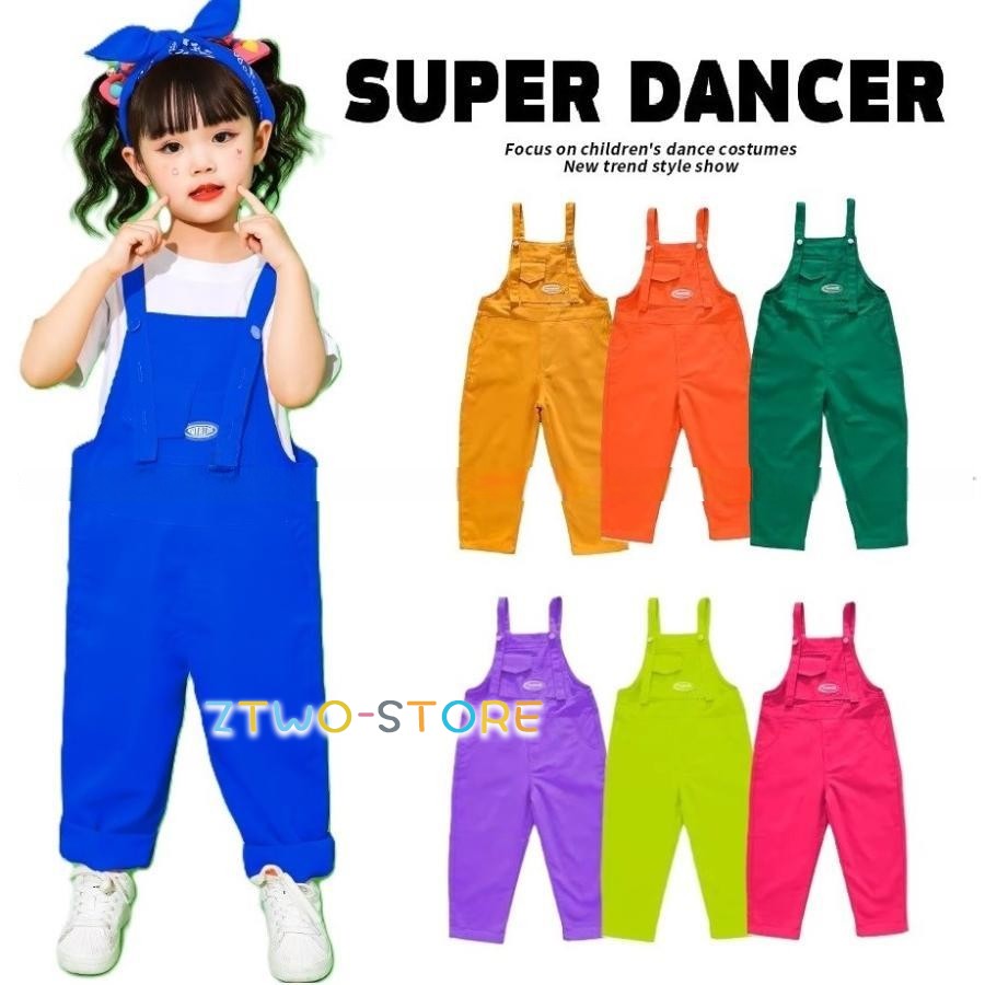 オーバーオール キッズダンス衣装 ヒップホップ 衣装 派手 つなぎ K-POP 韓国 サロペット 紫 青 黄緑 緑 オレンジ イエロー ピンク