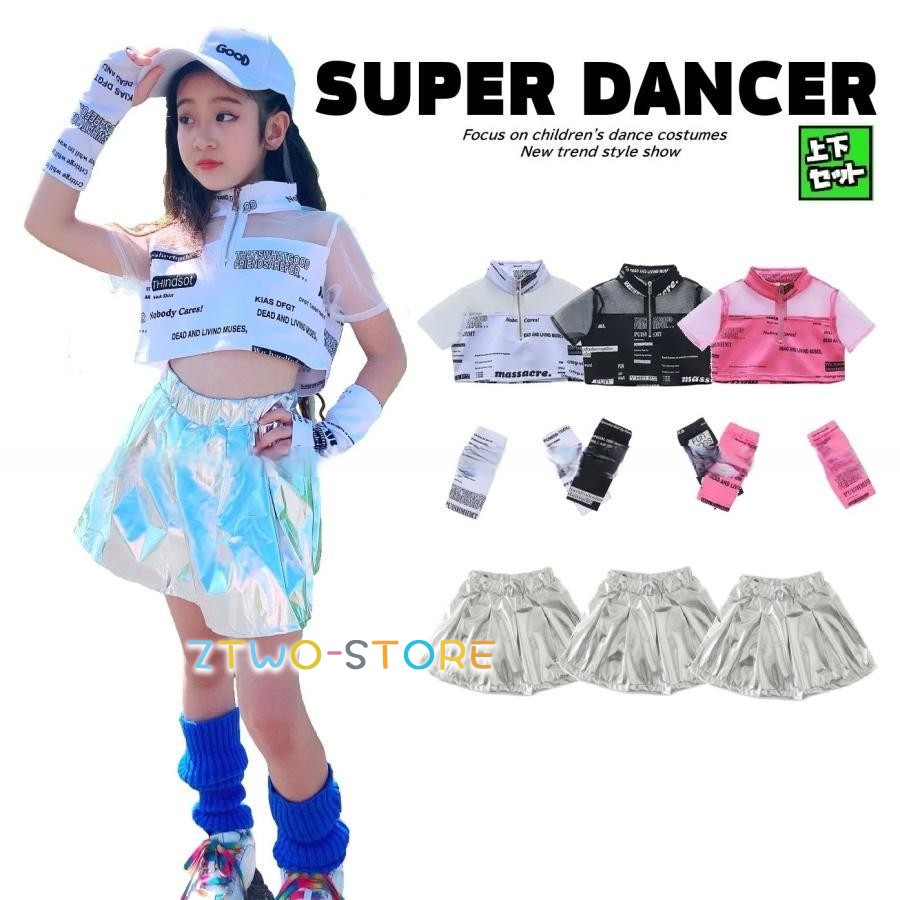 キッズ ダンス衣装 ガールズ セットアップ かっこいい 派手 ヒップホップ シースルー 白 黒 ピンク 銀 シルバー