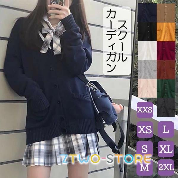 スクール カーディガン Vネック レディース 学生 秋 秋物 ポケットあり 大きめ ドロップショルダー 長袖 カジュアル ニットカーディガン 卒業式 女の子 高校生