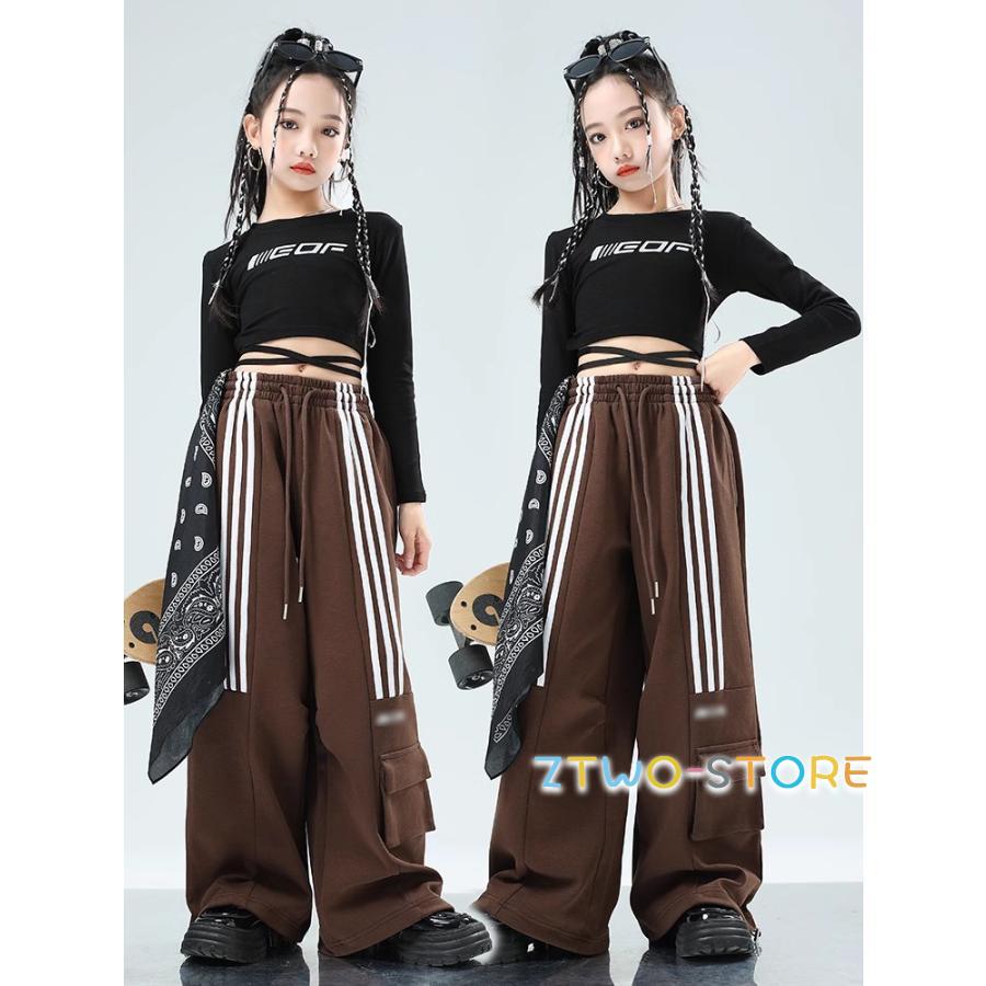 ダンス衣装 女の子 大人っぽい パンツタイプ ブラウン 黒 かっこいい 大人 ストリート ジャズ ダンスウェア 団体 ヒップホップ ガールズ チーム へそ出し