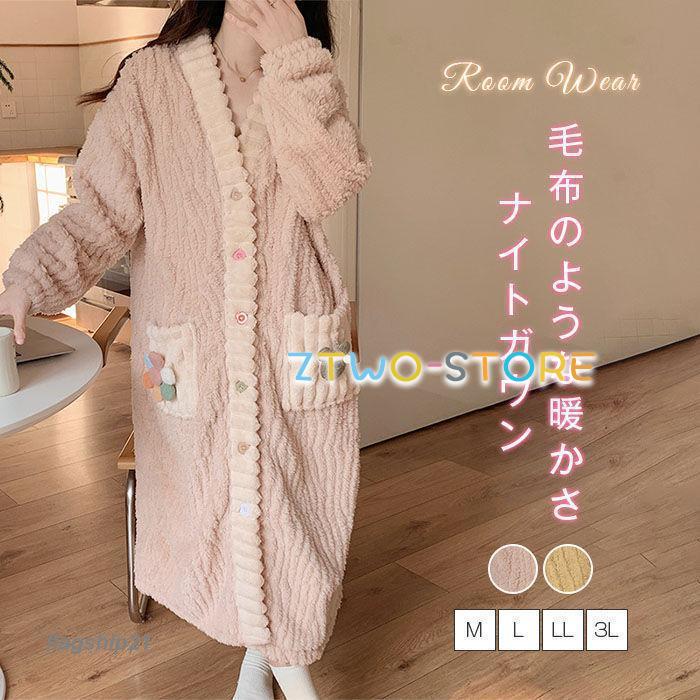 ガウン 冬 ルームウェア 着る毛布 パジャマ レディース バスローブ かわいい 長袖 ナイトガウン 風呂上がりもこもこ 寝巻き 女性用 ふわふわ 前開き 裏起毛