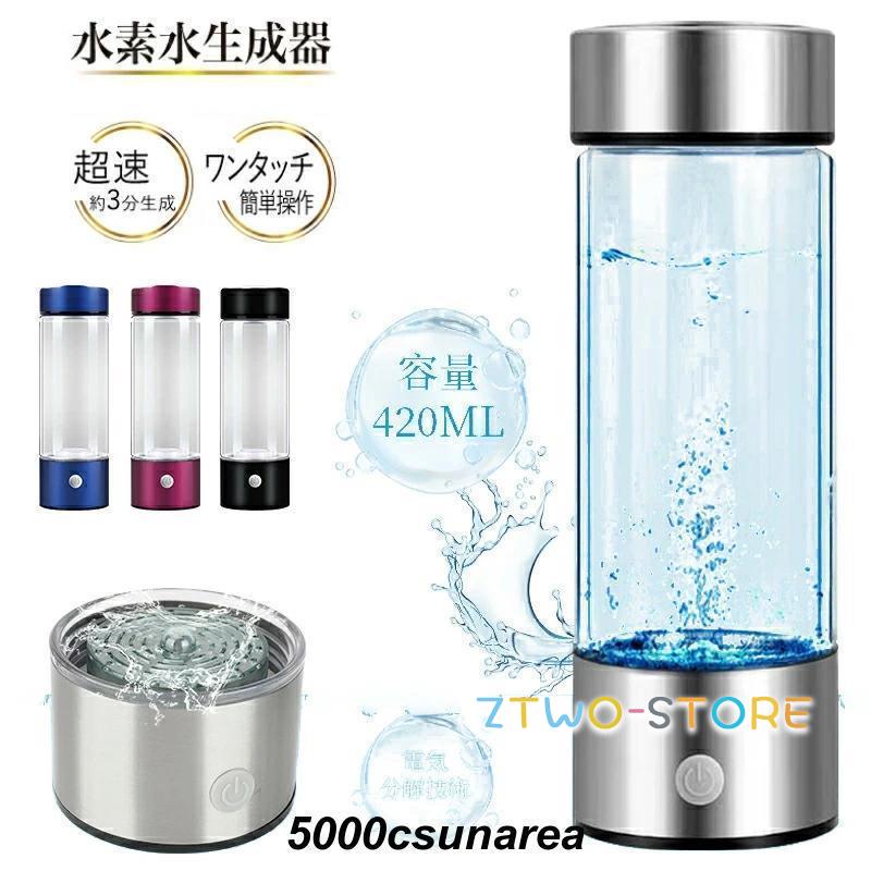 携帯用浄水器 水素水生成器 水素水ボトル高濃度水素水生成器LEDライプ付き420ml ポータブル 生成器ウォーター ボトル イオナイザーメーカー コップ 家庭 旅行