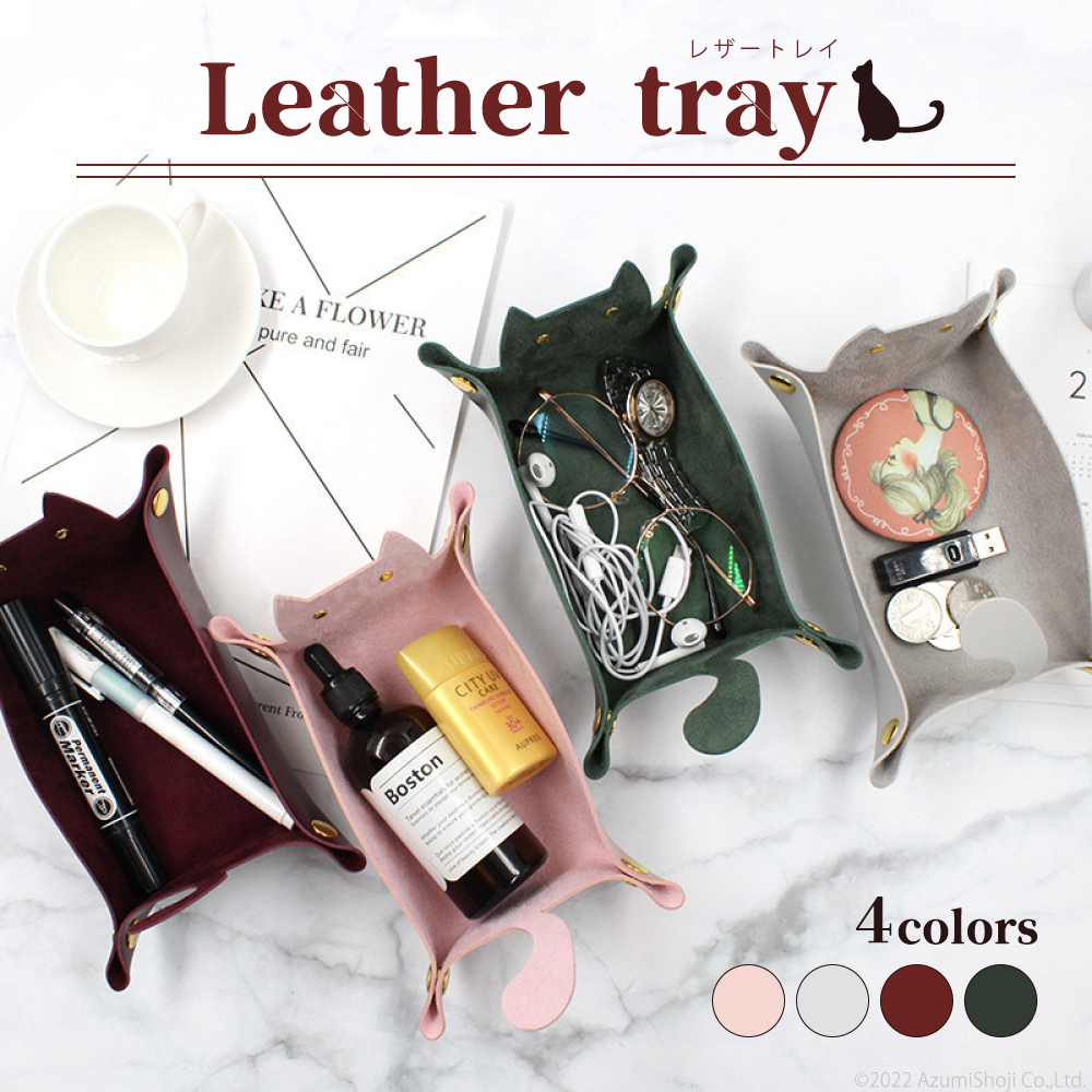 レザー風トレイ 猫 小物入れ 折り畳み 収納トレー アクセサリー 鍵 時計 指輪 メガネ 収納 ケース 猫グッズ 雑貨 かわいい プレゼント 小物 マネートレイ