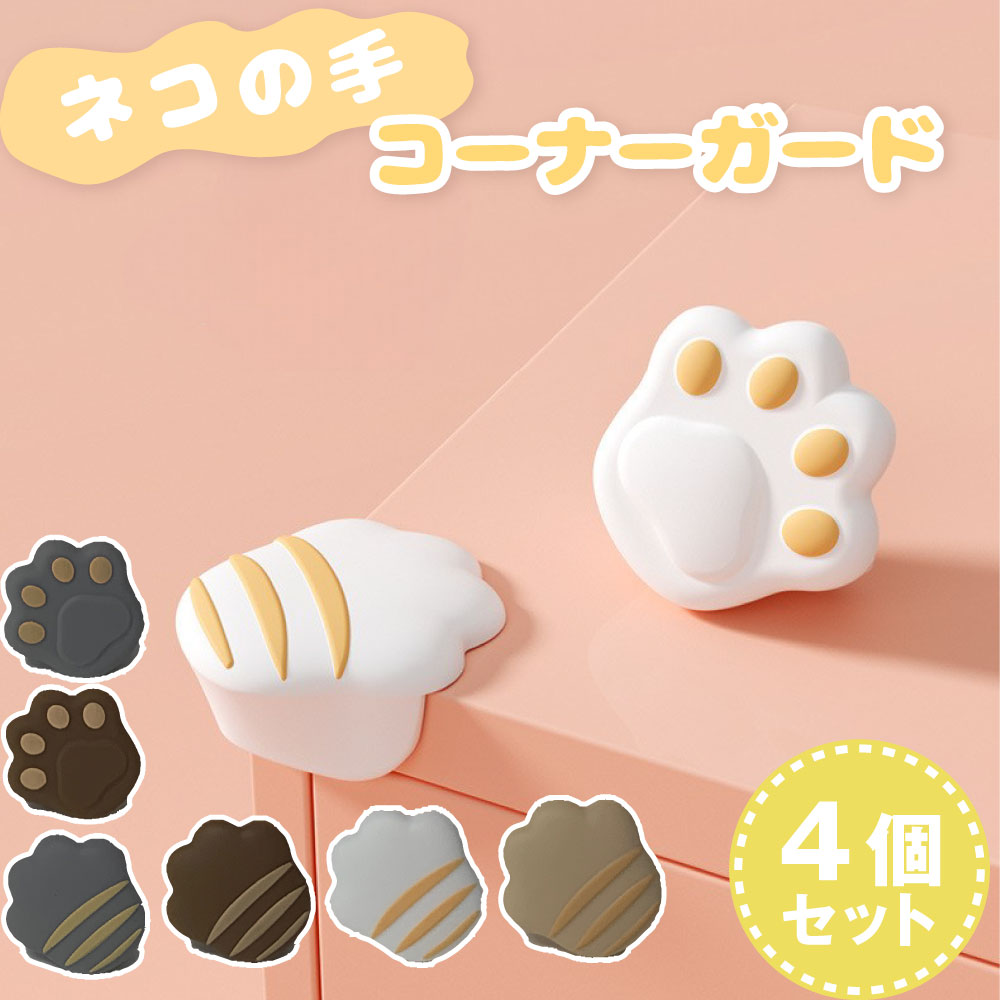 ネコの手コーナーガード 4個組 シリコン製 かわいい 猫 ケガ防止 テーブル 家具 角カバー 子ども 高齢者 動物