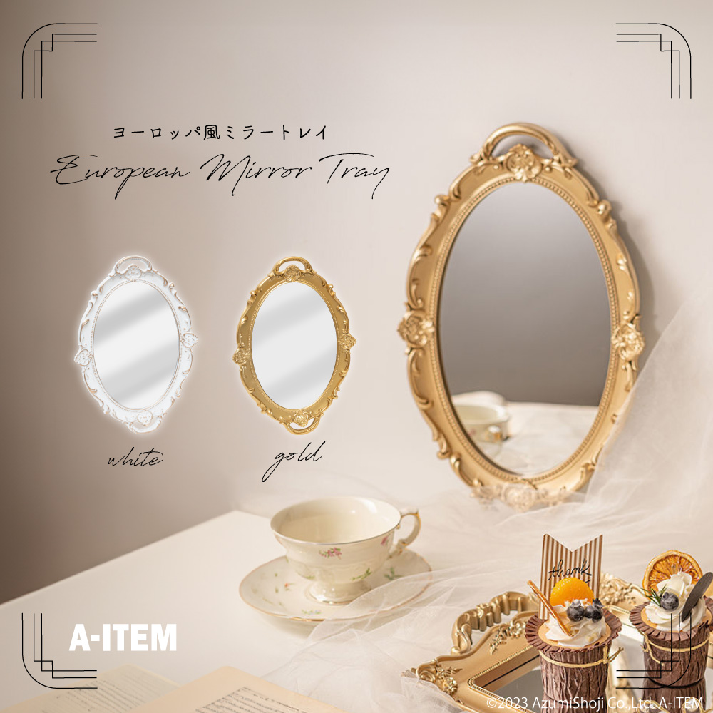 アンティーク鏡 ブロンズ ホワイト 鏡 壁掛け エレガント アンティーク風 おしゃれ バロック クラシック 洗面 インテリア 小さめ 雰囲気