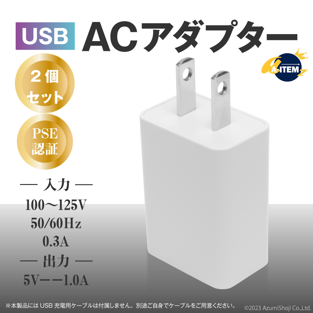 爆買 ACアダプター 2個セット PSE認証 充電 コンセント USB スマホ 充電器 スマホ充電器 1A 1ポート ケーブル USB電源アダプタ