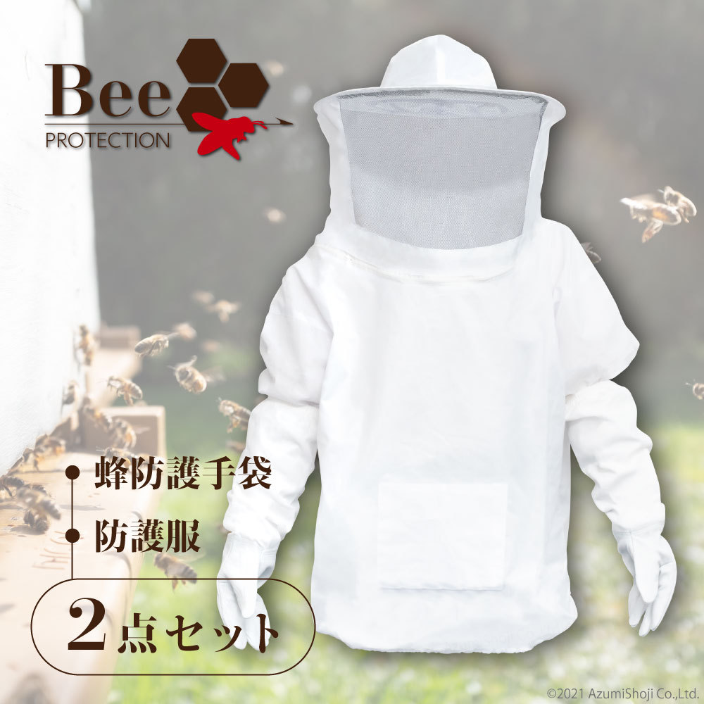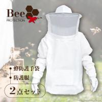 蜂防護手袋 ハチ防護服 セット 蜂 スズメバチ 養蜂 蜂よけ対策 フェイスネット 手袋 2点 セット ガーデニング用 作業着 作業服 蜂の巣 害虫 駆除