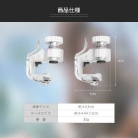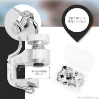 【取付手順】調節ネジを回して固定部を開きます。→スマートフォンを挟んだら調節ネジを再度回してしっかりと固定します。