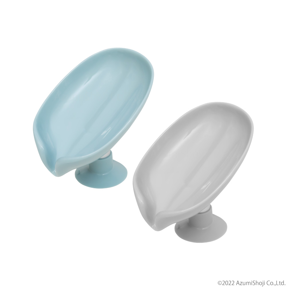 吸盤式石鹸置き 2個セット せっけん スタンド ホルダー ブルー グレー シンプル 洗面所 風呂 キッチン バスルーム カビ 吸着 衛生