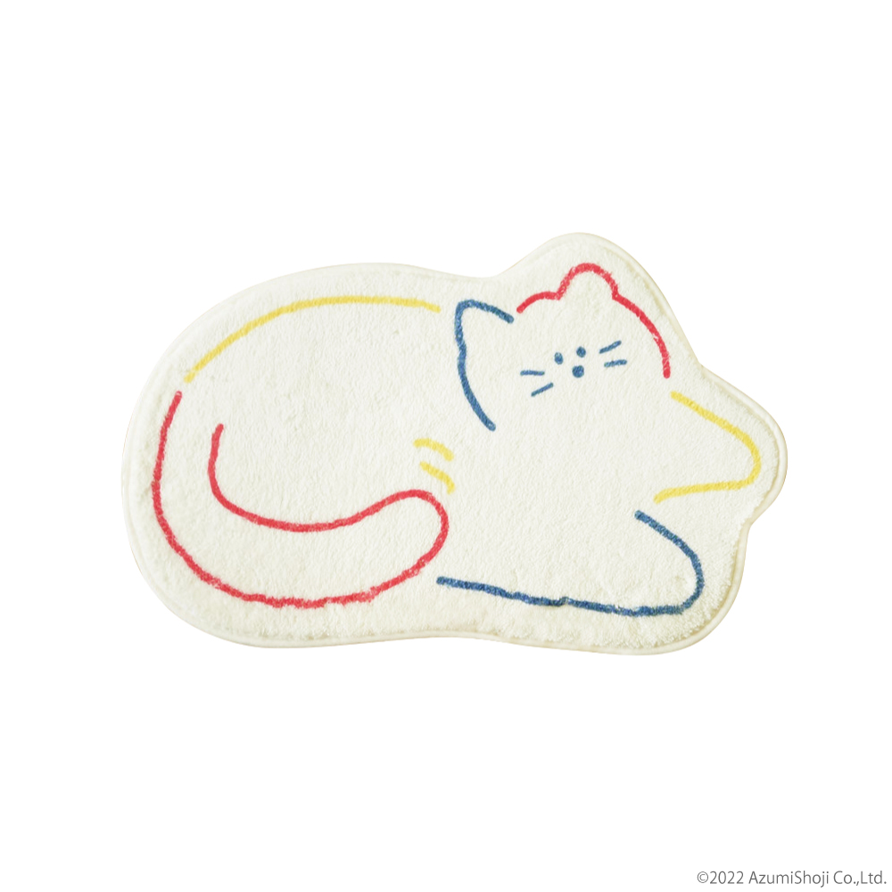 カラフルネコ 玄関マット W65×H38cm おしゃれ かわいい シンプル 癒やし 屋外 屋内 エントランス リビング バスマット 猫 韓国風 ふわふわ もこもこ